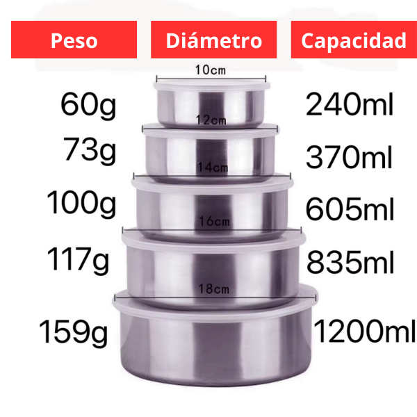Contiene 5 unidades de diferentes medidas, multifuncional para almacenamiento de alimentos, mantiene calefacción, contenedor de almacenamiento de productos.